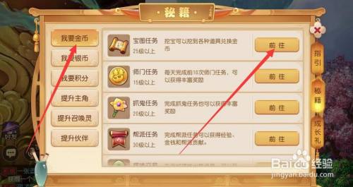 在秘籍界面选择需要提升的内容秘籍,然后点击前往就可以了。