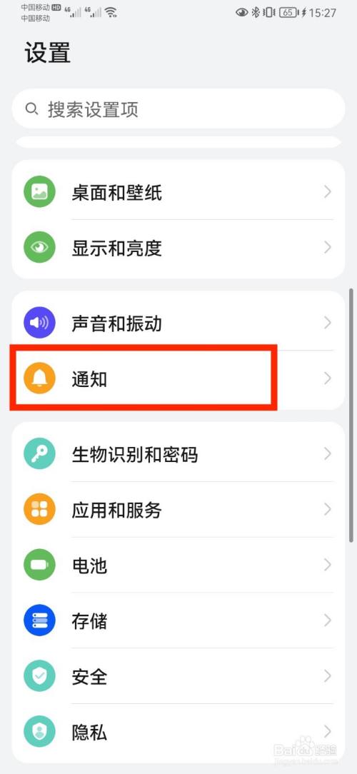 在手机设置页面,打开【通知】设置项。
