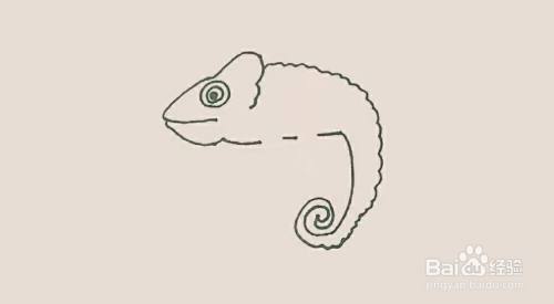 再画出两个圆环,里面点上一点作为它的眼睛。