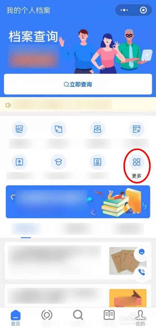 进入更多功能页面,三类服务,点击档案办理;