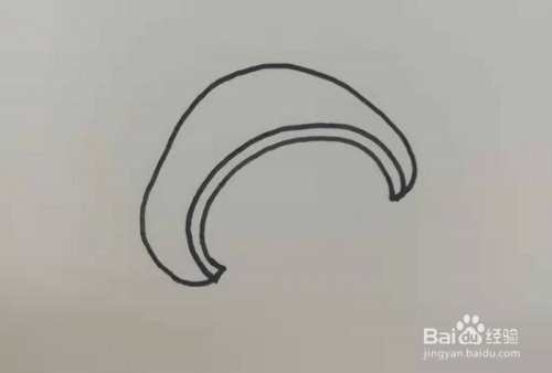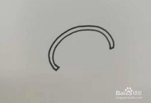 第二步,在刚刚画好的弧线的外面,再画上一条弧线,非常的简单,如下图所示。