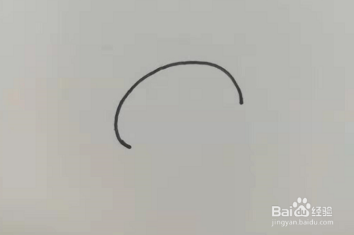 首先,准备好纸和笔,在纸上先画上一个弧线,有点类似椭圆的一半,如下图所示。
