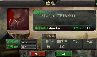 战斗过程与征战据点的方式一致。在地图上选取你想挑战的npc,弹出npc的信息如下: