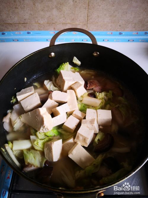 加入豆腐,添加适量开水煮至20分钟,添加少许盐鸡精即可。