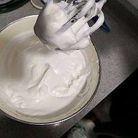 打发蛋清,白糖分3次加入,每隔30秒左右加入,蛋清打到拿起来不滑落就可以了