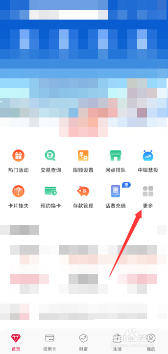 打开手机银行主页,点击页面中间【更多】