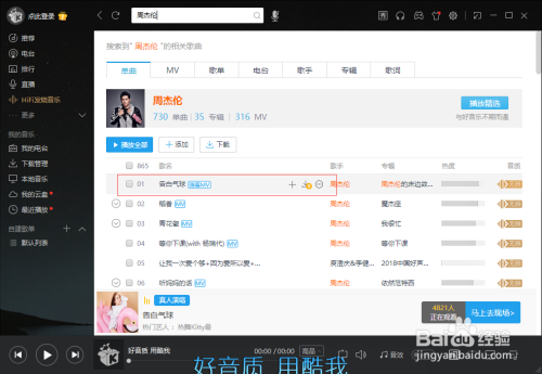 在查询结果中,双击歌曲名称,即可播放歌曲。