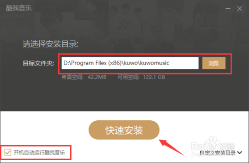 需要注意哦,这里有个小配置,开机自动运行酷我音乐盒,如果不需要的,取消选中即可。