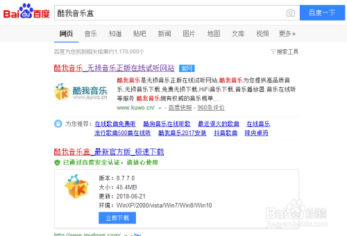 打开百度浏览器,搜索酷我音乐盒,从官方网站进行客户端下载。