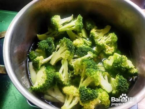 先煮西兰花的茎部,等茎部煮差不多熟后再加入西兰花花冠部分。