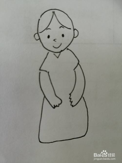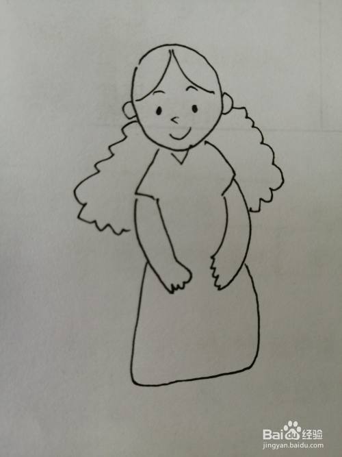 第五步,然后继续画出简笔画漂亮的妈妈的衣服部分。