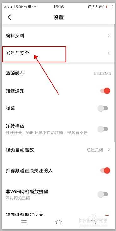 单击帐号与安全选项。