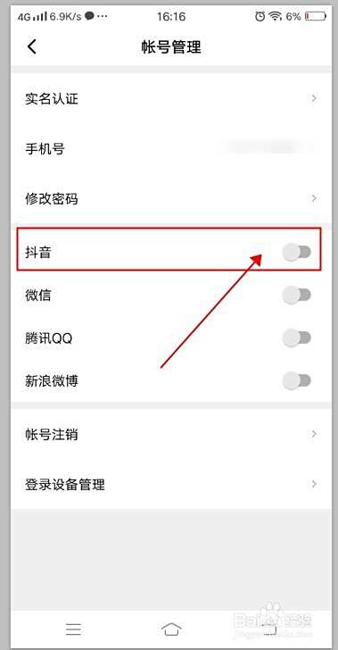 打开抖音选项后面的开关。