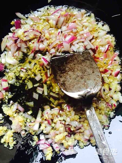 5倒油炒制洋葱,生姜!油稍微多一点!