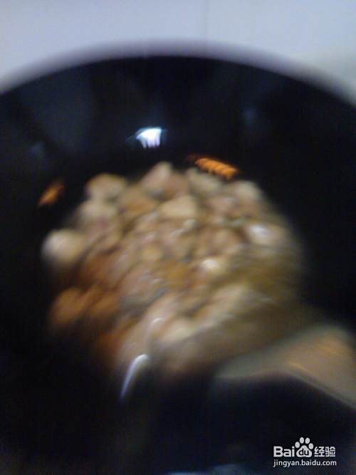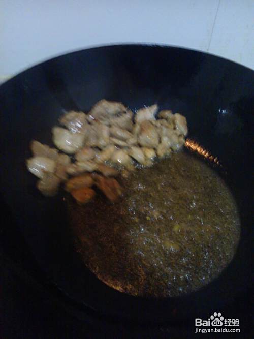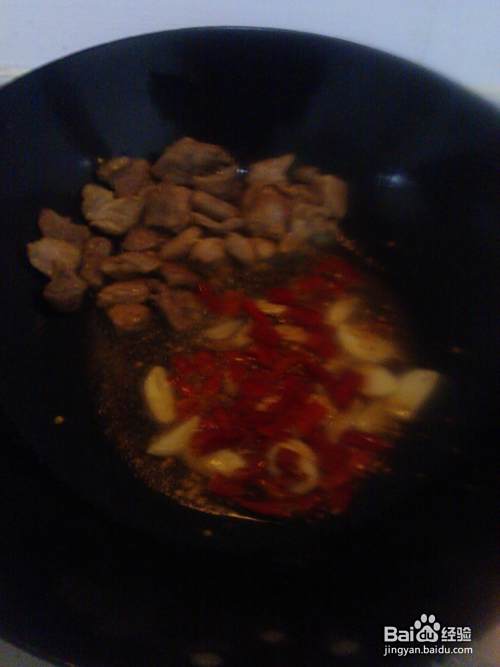 3. 在油锅中的爆炒,把肉爆至7-8成熟;