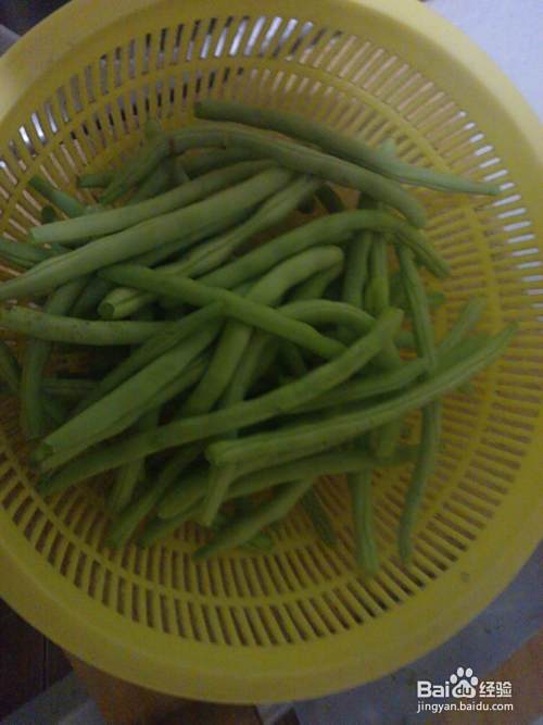 1. 四季豆放菜盆中洗净;