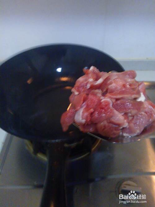 2. 将切好的肉片放入锅中爆炒;