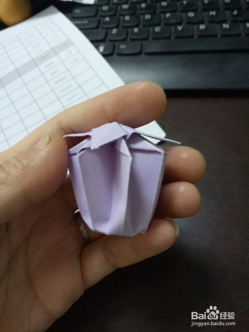 从中间的口往里吹入空气 ,再调整一下,一个草莓就折好了