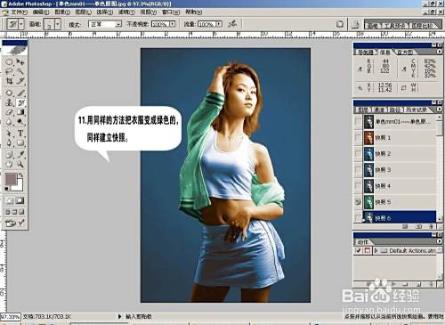用同样的方法把衣服变成绿色的,同样建立快照。