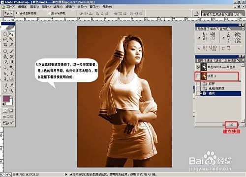 下面我们要建立快照了,这一步非常重要,是上色的常用手段。也许你还不太明白,那么先接着往下看很快就明白的。