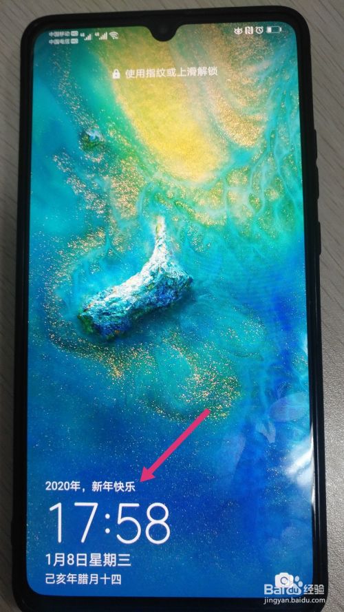 3、把手机锁屏,就可以看到设置的签名文字了。