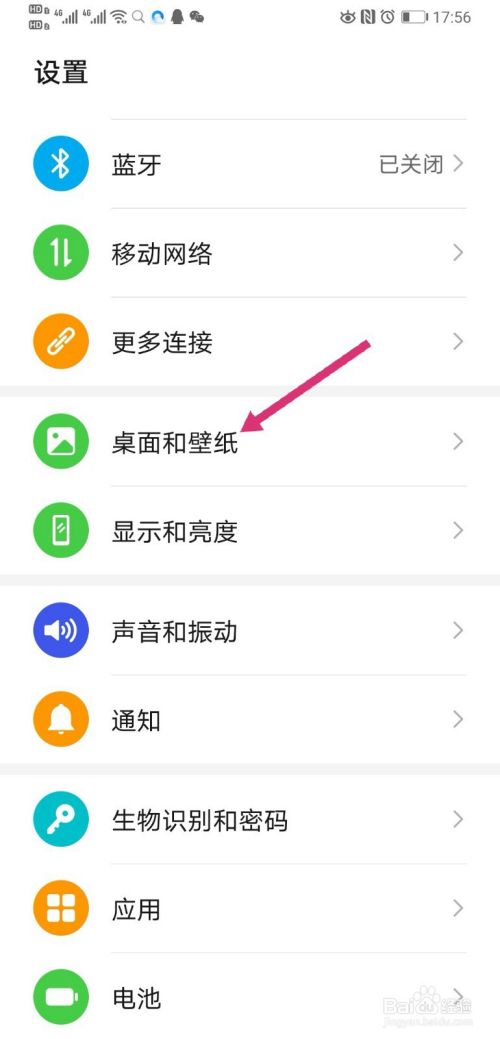 进入设置界面,点击桌面和壁纸。