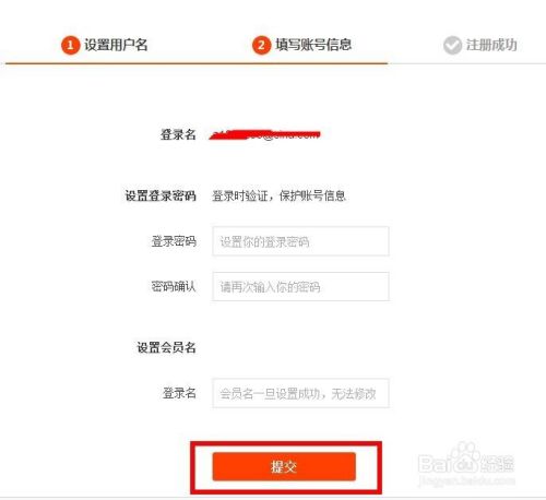 按照要求填写你的密码,会员名等,填完后点击下方的”提交“