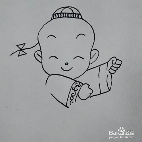 然后画出小男孩的五官和辫子