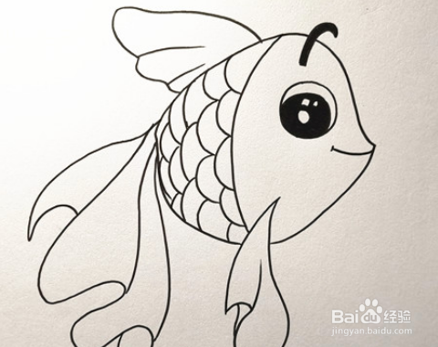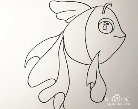 然后,画出金鱼的灵活的尾巴和鱼鳍。