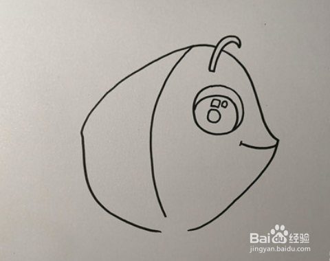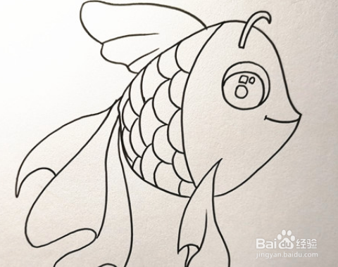首先,先画出金鱼大大的眼睛和长长的眉毛。