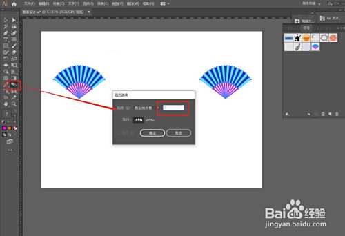 》复制一个扇形,使用混合工具,设置混合参数,如图,在扇形上各点击一下建立混合图形