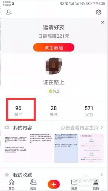 打开火山小视频软件后,切换到“我的”选项,点击粉丝的位置