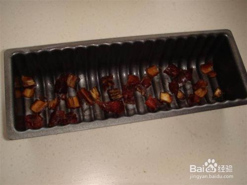 模具里抹点油,放入切好的椰枣。