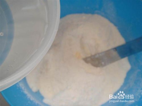 慢慢加入温水,边加边搅拌。