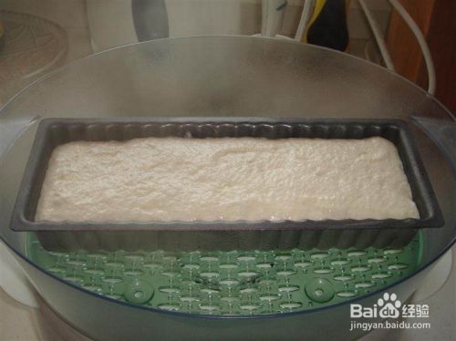 将面糊倒入,表面抹平,放在温暖处发酵。