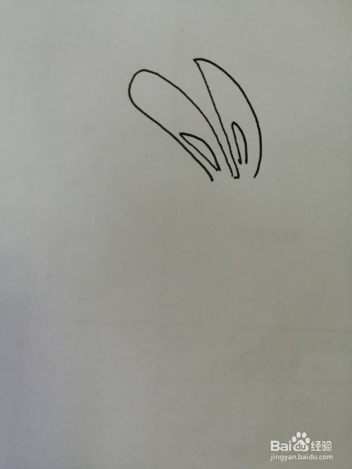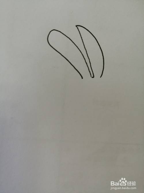 第一步,我们先把可爱的小兔子的两只长长的耳朵画出来,注意耳朵上纹路的画法。