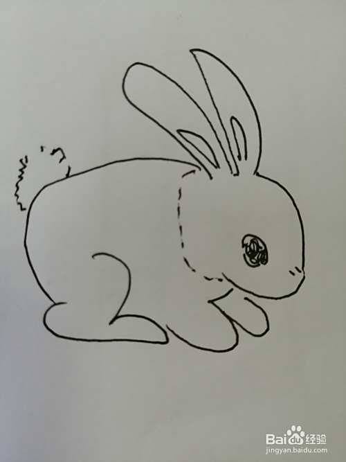 第七步,最后把可爱的小兔子的小尾巴画出来。可爱的小兔子就画好了。