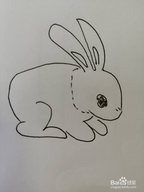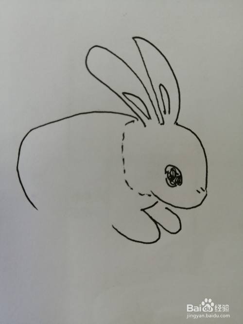 第五步,然后在可爱的小兔子的头部后面画出一条弧线,小兔子的身体画好了。