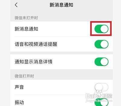 进入新消息通知设置界面,将新消息通知开关打开即可。