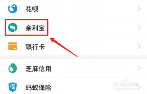 进入“我的”选项后,点击选项界面上的“余利宝”功能。