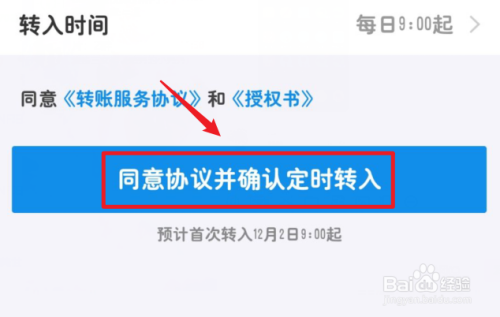 完成设置以后,点击“同意协议并确定定时转入”按钮,最后完成身份验证即可。