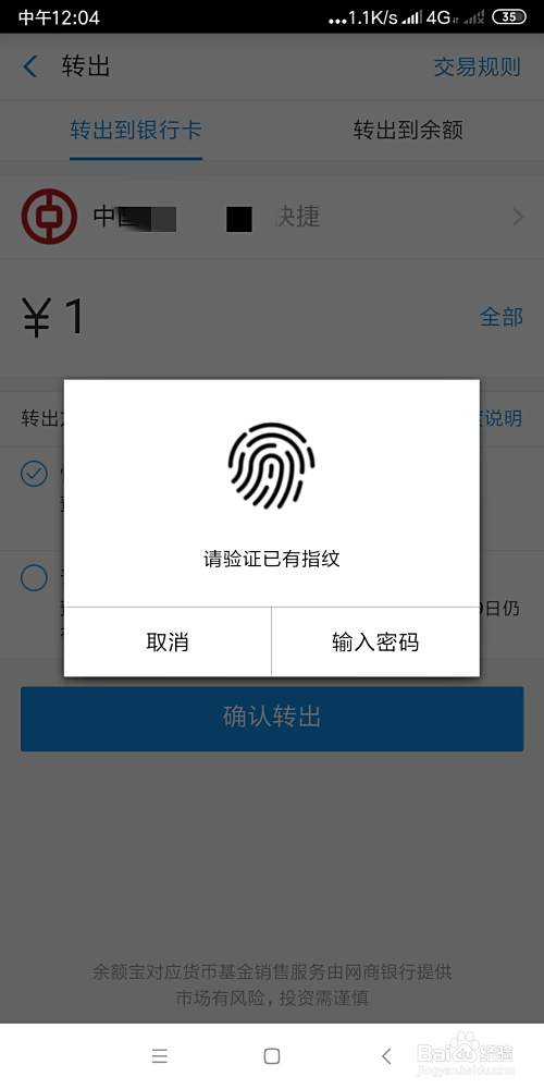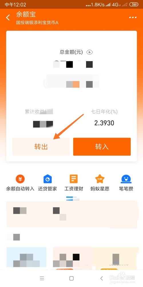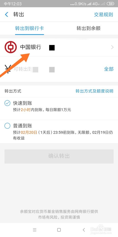 选择【转出】按钮,准备把钱转出。