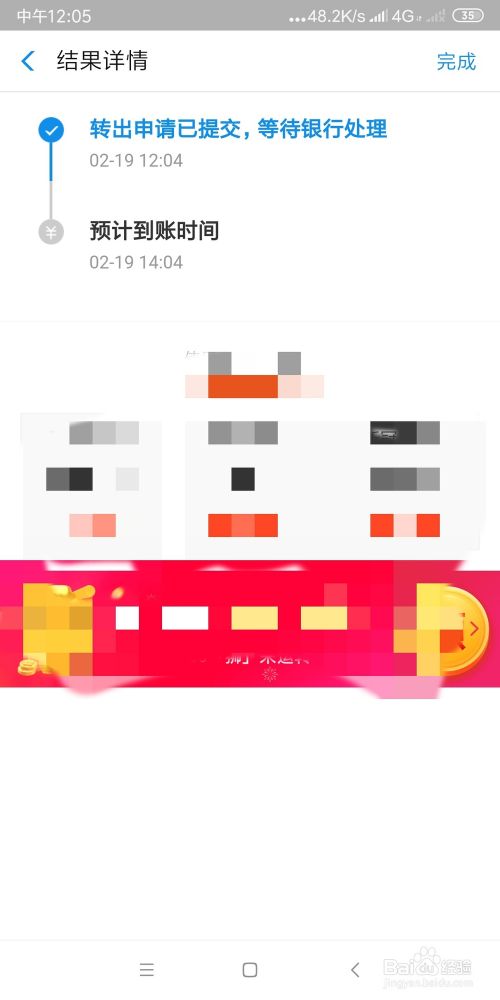 进入结果详情界面,等待转账结果,界面未显示手续费。