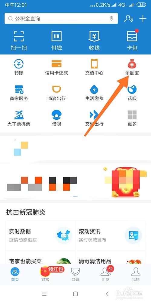 点击右上角的【余额宝】按钮。