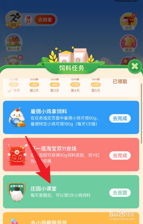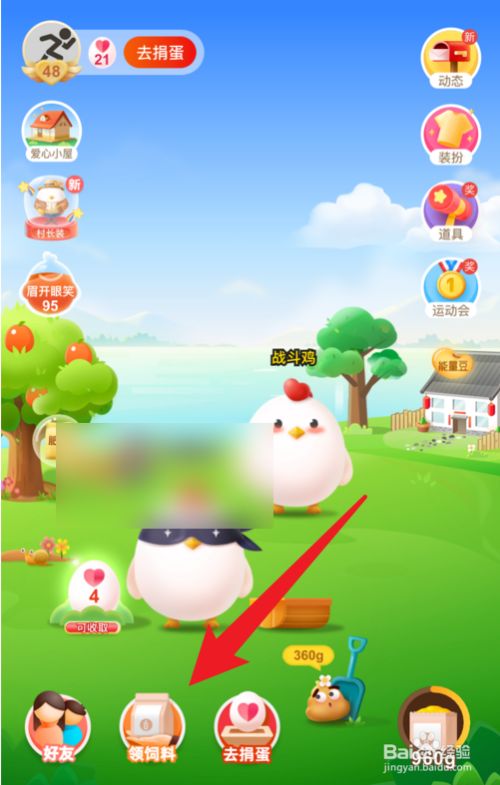 在蚂蚁庄园页面,点击“领饲料”按钮。
