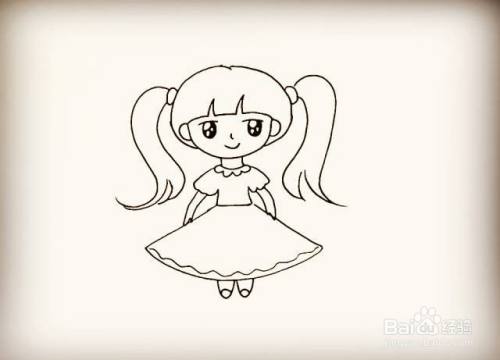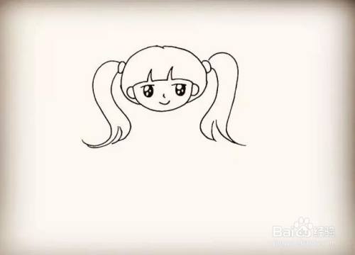 她的头上扎着两只弯弯的小辫子,注意线条的变化。