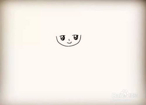 首先我们画出一个半圆形,是小女孩圆圆的脸颊。再画出两颗水灵灵的眼睛,眼睛里面留出高光。然后再画出她的小鼻子和嘴巴,她是微笑着的。