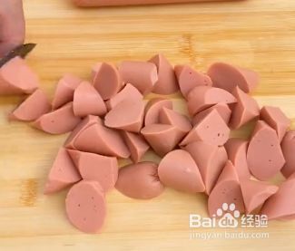 香肠切成小块,起锅烧油,放香肠,炸至金黄捞出