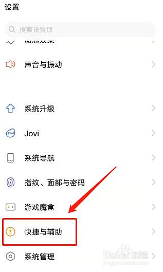 进入设置页面后,点击【快捷与辅助】,如图所示。