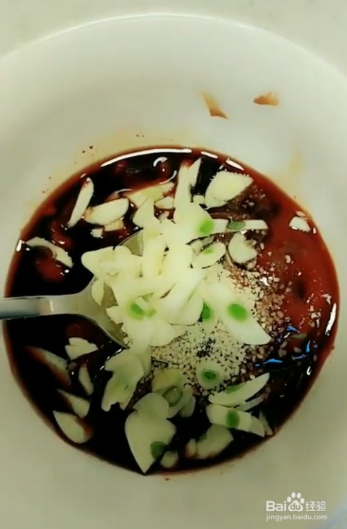 碗中放入适量的番茄酱、生抽、陈醋、白糖、鸡精、蒜末,加入适量水,搅匀,调汤汁。